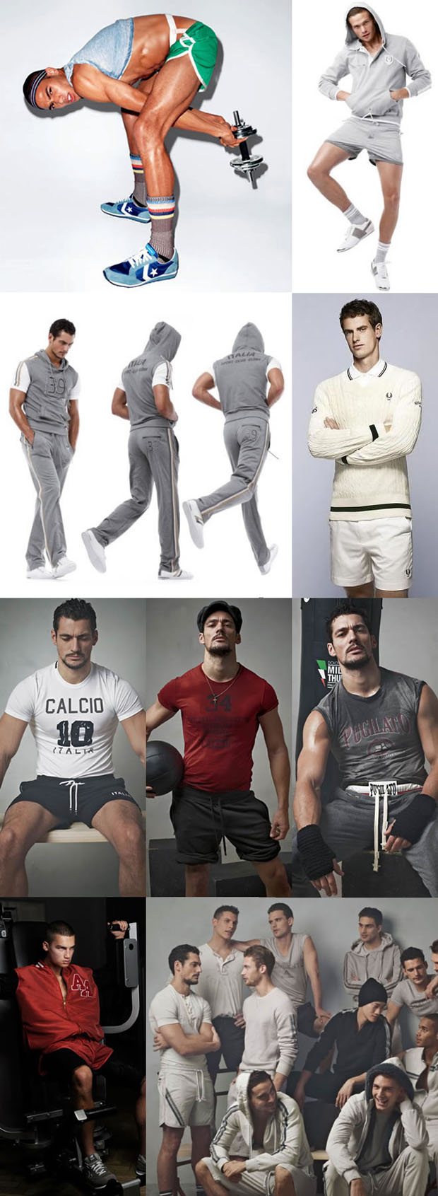 Мы не говорим о том, что Вы должны носить шикарный винтажный спортивный костюм и боятся в нем вспотеть. Мы говорим о том, что Вам следует носить, чтобы Вам было комфортно, и Вы чувствовали себя уверенно. Хорошо выглядишь=хорошо себя чувствуешь. Количество людей, которые неуверенно чувствуют себя в спортзале – огромное. Если Вам это чувство знакомо, то эта статья должна быть Вам точно интересной. В данной статье мы покажем, как совместить стильные вещи и практичность, что так необходимо при занятии спортом. Мы верим в то, что спортивная одежда должна быть достаточно традиционной, и главный акцент стоит делать на ее удобстве. Мы будем рассматривать одежду для разных видов тренировок: от кардио до направленной на максимальное наращивание мышечной массы. Мы не призываем всех потеть в одежде от Marc Jacobs и потому также предложим менее затратные альтернативы. Спортивная одежда давно является частью рынка модной мужской одежды, но она очень часто недооценивается. Нижнее белье Вы, конечно, можете не носить нижнего белья вообще, но Вам явно не будет комфортно на беговой дорожке. Профессиональные бегуны не носят нижнего белья, но их обтягивающие костюмы прекрасно справляются с функцией поддержки. Главное при выборе нижнего белья это то, что оно должно Вам обеспечивать фиксацию и поддержку. Calvin Klein, король нижнего белья, предлагает несколько интересных вариантов для спортзала. Также советуем обратить внимание на Alexander McQueen и D&G. Не стоит отторгать яркие цвета. Ниже несколько примеров: