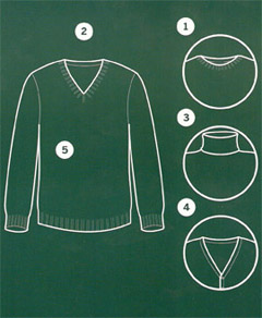 Свитер или пуловер с обычным классическим вырезом сочетается с рубашкой и галстуком так же хорошо, как и с футболкой. Главное, обращайте внимание на материал. Хлопковый свитер в сочетании с футболкой хорошо подойдет для отдыха, а кашемировый, в сочетании с рубашкой, - для коктейльной вечеринки. 2. V-образный вырез Есть определенный вид свитеров с V-образным вырезом, которых вообще не должны быть в Вашем гардеробе. Это агрессивный трикотажный свитер из толстой пряжи кремового цвета и свитер с огромным вырезом, из-под которого виднеется волосатая грудь. Ваш гардероб должен содержать несколько тонких шерстяных и кашемировых пуловеров с небольшим V-образным вырезом, и носить их лучше с рубашкой, а галстук - уже на Ваше усмотрение. Свитеры с большим V-образным вырезом не являются taboo, просто надевайте под них плотно прилегающую к телу футболку. 3. Высокий ворот Избегайте больших размеров и тяжелых тканей. Свитер с высоким воротом должен быть чуть обтягивающим, легким, и неярким. Если Вы будете следовать вышеуказанному совету, то такой свитер может стать неотъемлемой частью Вашего осенне-зимнего гардероба. |